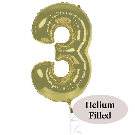 Helium Inflated Foil Balloon Number 3 White Gold 20 x 34 in - 1 set